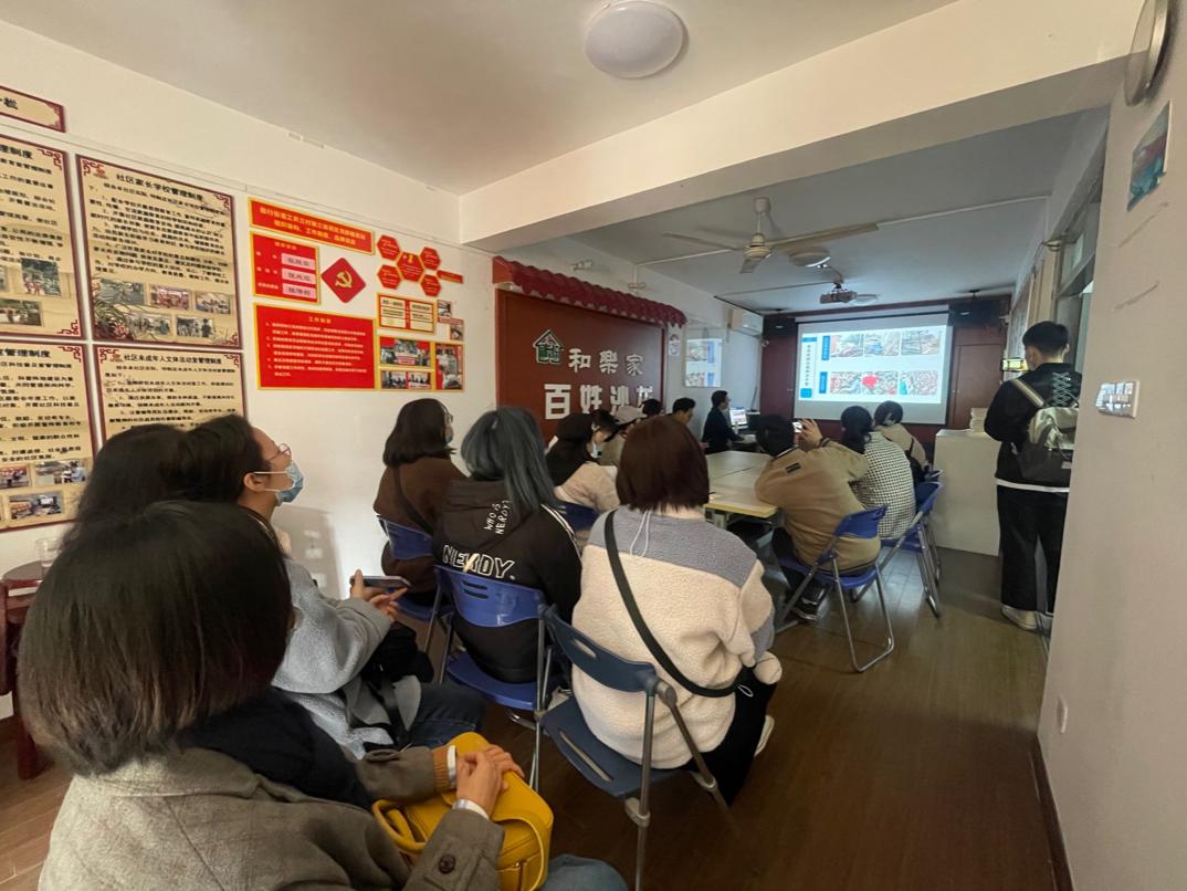 参观结束后,工作人员带领员工们来到了社区居委会的活动室,参观了社区的综合文化服务部和妇女之家,然后在妇女之家向员工们进行了小区总体情况的具体介绍。主要向同学们介绍了该小区如何以“智多星”议事堂为载体,来推进小区自治家园建设的过程。“智多星”议事堂是该小区在业委会自行解散和物业公司版图撤离的情况下,由居委会推动所成立的由业主、居民自愿参加的自治组织。该小区通过成立议事堂,招募社区中的精英成员,组成了专业的议事小组。以问题为导向,注重过程和方法,对小区需要解决的难题进行调查研究,提出议题,通过开会讨论形成方案,在居民表决同意后推动执行,帮助居委会解决了许多小区的难题,也让小区居民有了参与社区建设的途径。在介绍结束后,同学们也就小区议事堂成员的选择标准、工作制度等相关内容进行了提问。