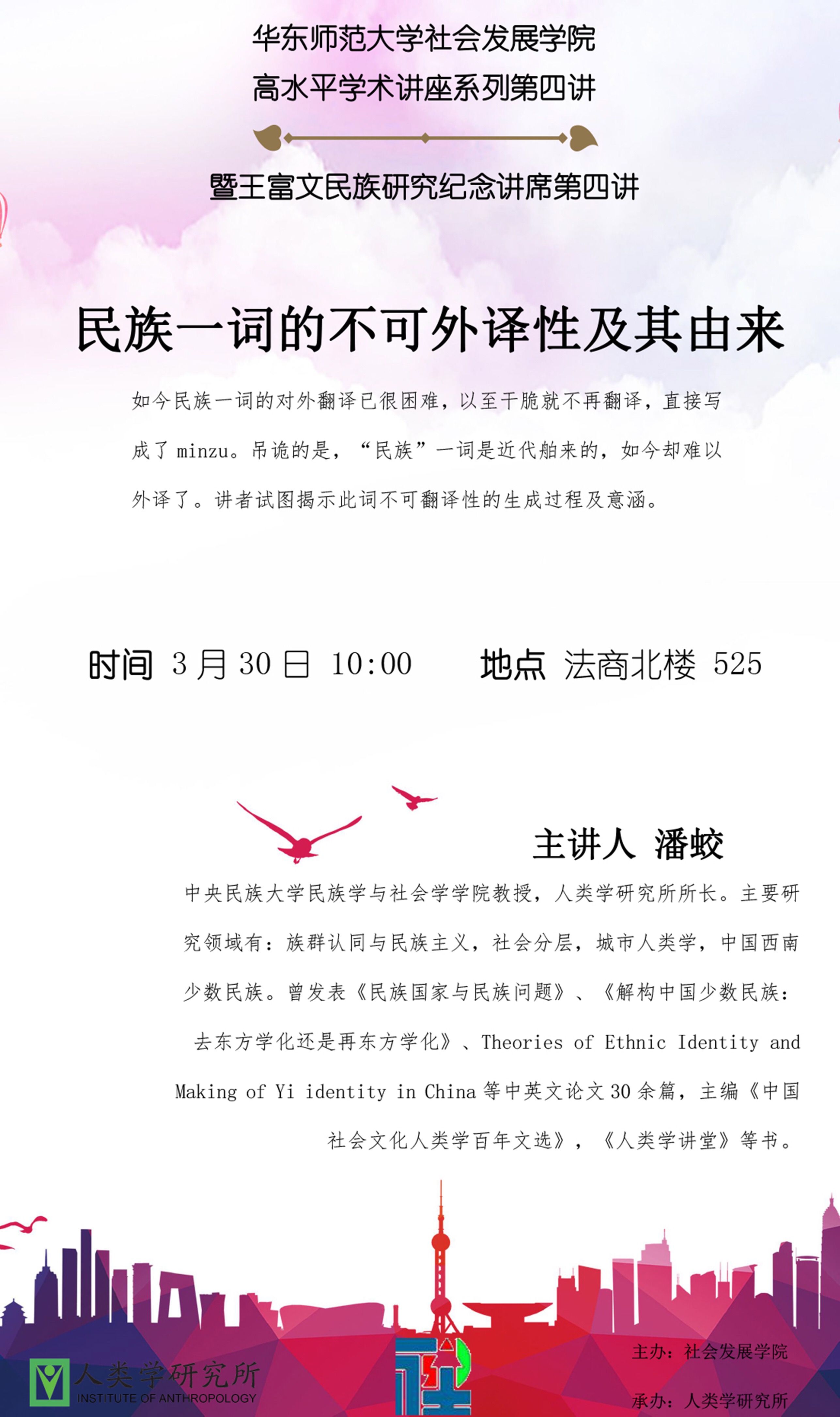 【摘要】如今,在面向海外学术界的交流过程中,“民族”一词显得颇为含混以至于难以找出妥帖的对应词,很多学者干脆就不再翻译,直接以“minzu”示人。颇为吊诡的是,“民族”一词本来就是近代的舶来的。本次的主讲嘉宾潘蛟老师试图为我们揭示“民族”一词不可翻译性的渊源及其在当下国际学术语境中的内涵。
