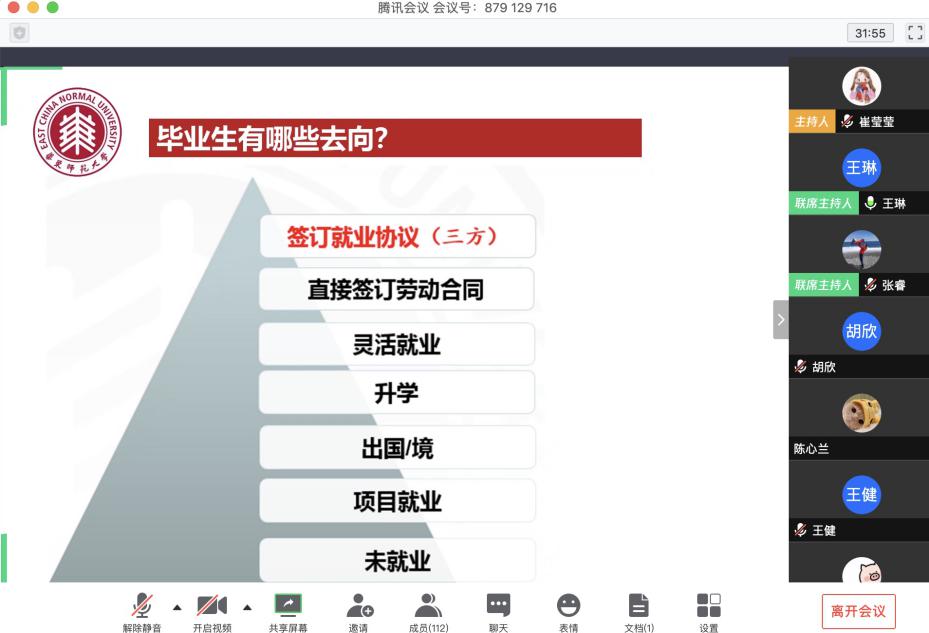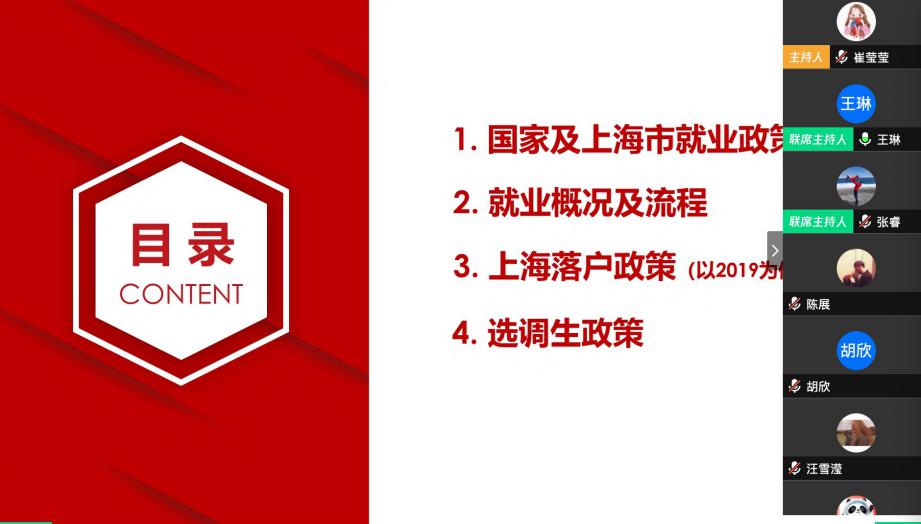 2020年3月25日下午14点,由员工职业发展中心主办、3044永利集团承办的就业服务月系列活动——“求职有道”研究就业落户政策解读会成功举办。本次活动以腾讯会议的方式,邀请了员工职业发展中心王琳老师,围绕选调生政策、上海市落户政策等问题展开讲解和答疑,3044永利集团团委书记张睿老师出席本次分享会,共有100多名同学参与了此次活动。