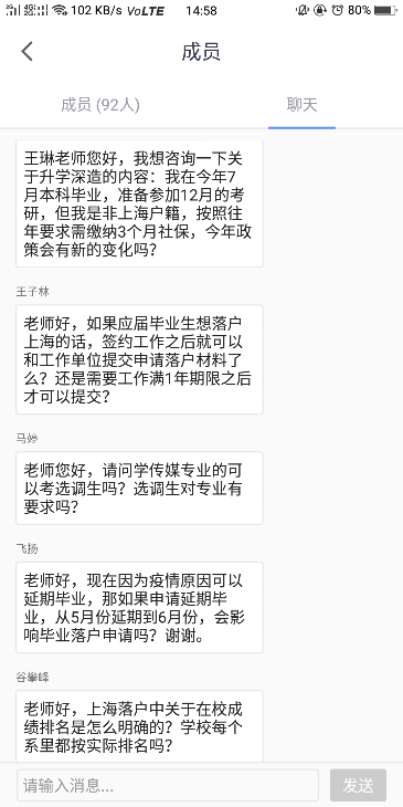 最后在答疑阶段,同学们热情满满,就“考取选调生的材料准备、“应届生享有的落户政策红利”、“延期毕业后落户的申请”、“高校人事代理的申请是否可以直接落户等问题向王琳老师咨询,王琳老师耐心解答了同学们的问题,并且强调了社会学、社会工作等专业在上海市落户政策中的导向因素,让每位参与线上会议的同学收获了丰富的信息,为未来的求职道路积攒了经验,对“就业,你准备好了吗?”这个问题给出笃定而自信的答案!