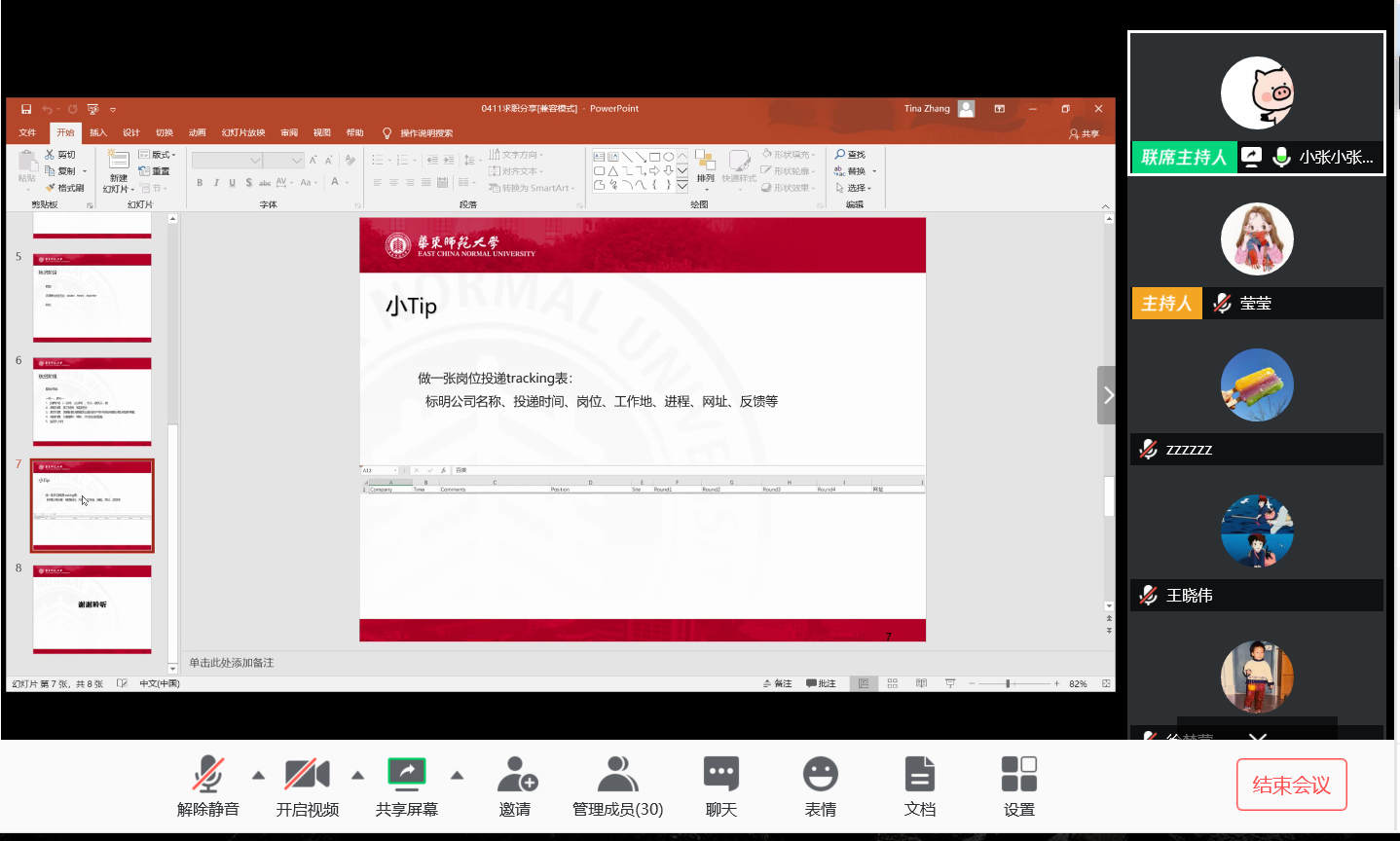 2020年4月11日上午9点,由员工职业发展中心主办、3044永利集团承办的就业服务月系列活动——求职有道:国企和互联网就业分享成功举办。本次活动以腾讯会议的方式,邀请了3044永利集团人口学专业17级人口学硕士研究生张婷婷以及17级社会学硕士研究生张梦泽,围绕企业性质差异、就业信息搜集、面试注意事项等问题展开讲解和答疑,近50名同学参与了此次活动。