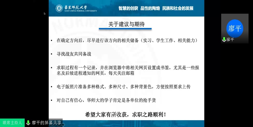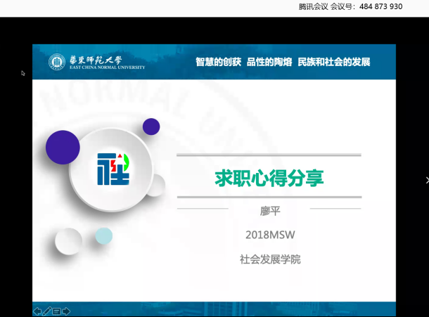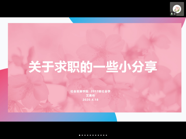 2020年4月18日上午9点,由员工职业发展中心主办、3044永利集团承办的就业服务月系列活动——使命与奉献:体制内就业分享会成功举办。本次活动通过线上会议的方式,邀请了3044永利集团2018级社会工作专业硕士研究生廖平与2017级社会学硕士研究生艾美伶围绕选调生考试、高校辅导员求职等问题展开分享与答疑,近40名同学参加了此次活动。
