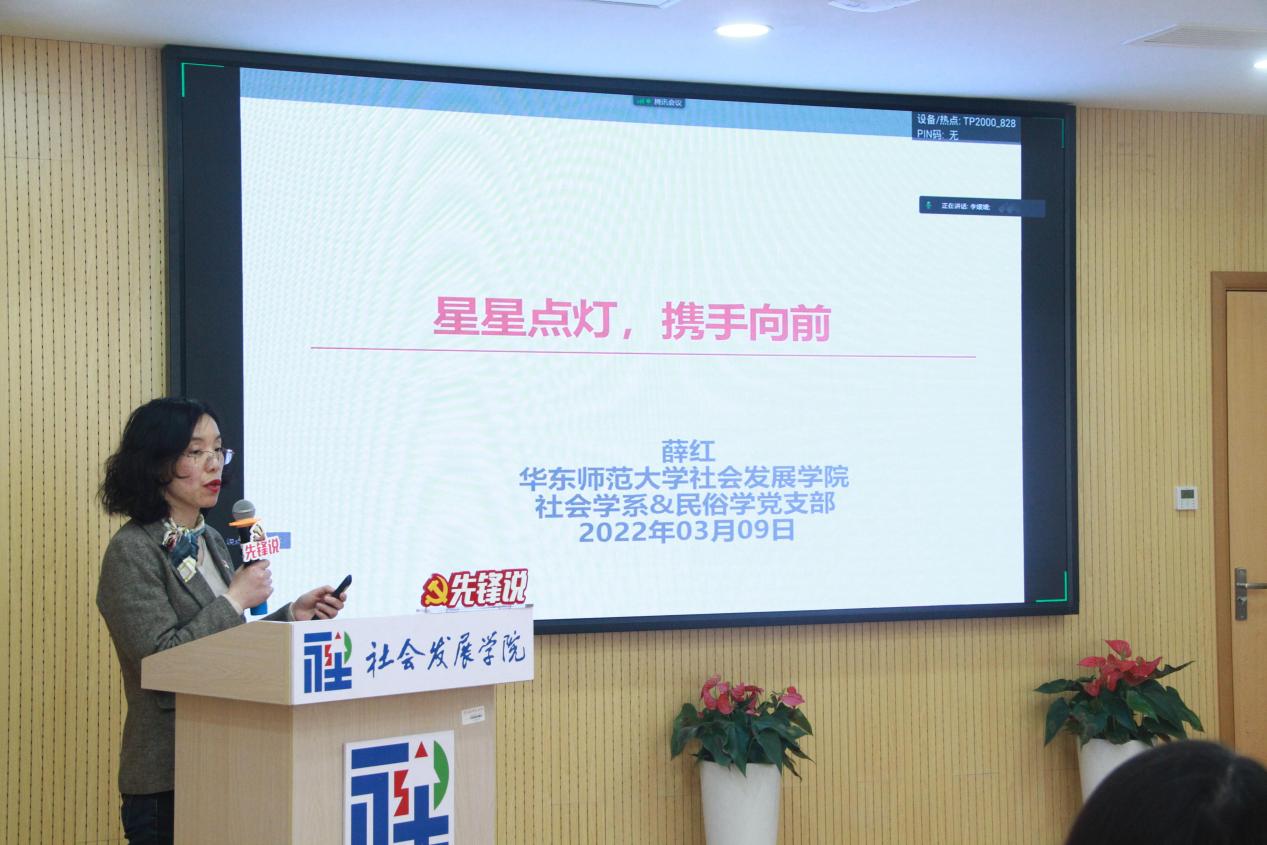 有近27年党龄的薛红老师介绍了亲身志愿服务的经历和开设的公益相关课程,并以星火村——一个城中村的故事向我们分享了其公益实践。一场给城中村孩子的运动会、“行走吴泾马拉松+”亲子迎新活动……丰富的活动形式和内容展现了星火村孩子受益于公益的成长与收获。
