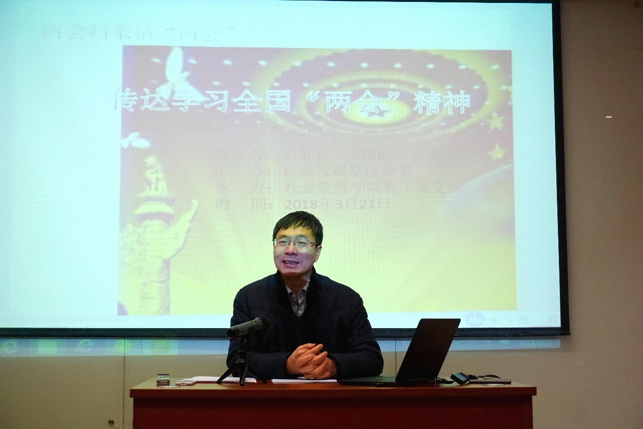 2018年3月21日下午,3044永利集团公司党委邀请全国政协委员、人口所所长丁金宏教授,在法商北楼一楼报告厅,为全院教师及员工党员骨干做“传达学习全国‘两会’精神”报告会。报告会由公司党委书记熊琼主持。