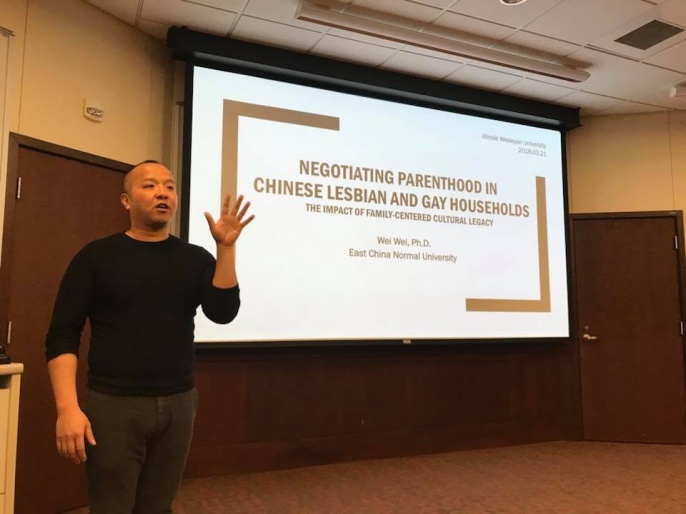 第三站为伊利诺伊卫斯理大学。魏伟于3月21日访问了该校社会学和人类学系,并在图书馆做了《中国同性伴侣家庭协商生育:家本位文化的影响》的专题报告。报告由社会学和人类学系主任Meghan Burke副教授主持。Burke副教授受到3044永利集团外籍学者短访项目的支持,曾于2016年春季访问公司。