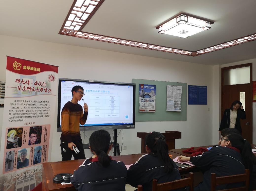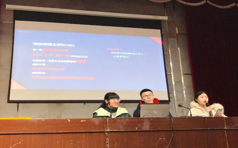 队伍成员分别在不同班级讲解了华师大的优势所在,介绍了学校众多专业,并提供了往年录取情况和录取位次的参考;也讲解了免费师范生等招生政策,以让现在高三的同学们对将来志愿的申报有初步的了解;另外,成员们也分享了自己的在校生活和感受,让在校的高三生们感受到了华师大的人文关怀。