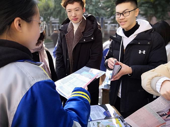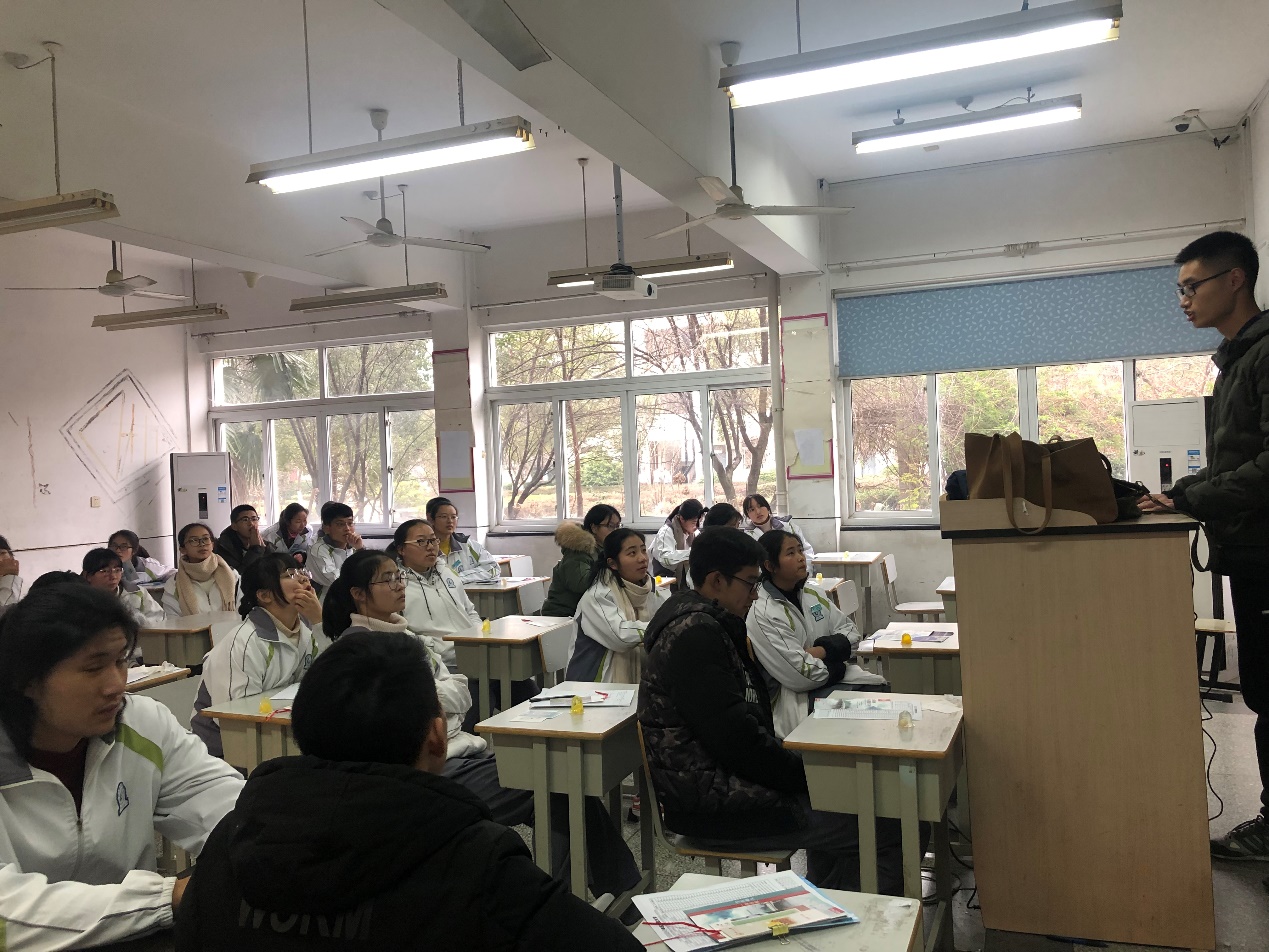 在1月21日下午4时,在与公司相关负责人联系之后,程远霖实践队伍采取进班的方式开展宣讲活动。在综合了时间、组内成员的能力和现阶段在校生的报考意愿之后,他们主要面对高三的A、B班进行宣讲;同时也为其他平行班的同学分享了学习经验。