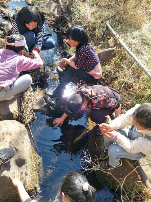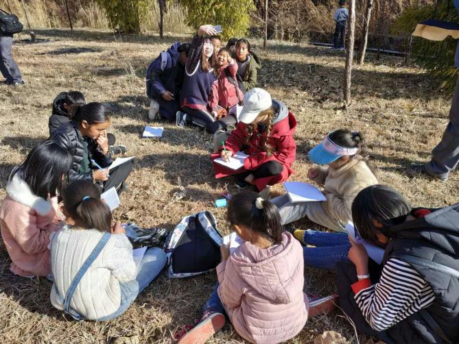 为了释放孩子的天性,促进队员之间的熟悉,缓解沟通间的阻碍,乡土建设学社的志愿者积极鼓励孩子们参与到与大自然的互动之中。