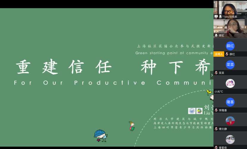 本次分享持续近两小时,除了3044永利集团《社会公益与创新》课程和经济与管理学部的《居住区规划》的同学参与,还有来自上海、昆山、北京等地参与SEEDING计划的居民参与,讲座在线人数总共有80多人。刘悦来老师的讲座让我们意识到,社区营建不仅是城市规划设计问题,也与人际交往、邻里和谐密切相关。“重建信任,种下希望”,你我的每一份积极行动和互信互爱,都可以使彼此共同的社区与家园变得更加美好。