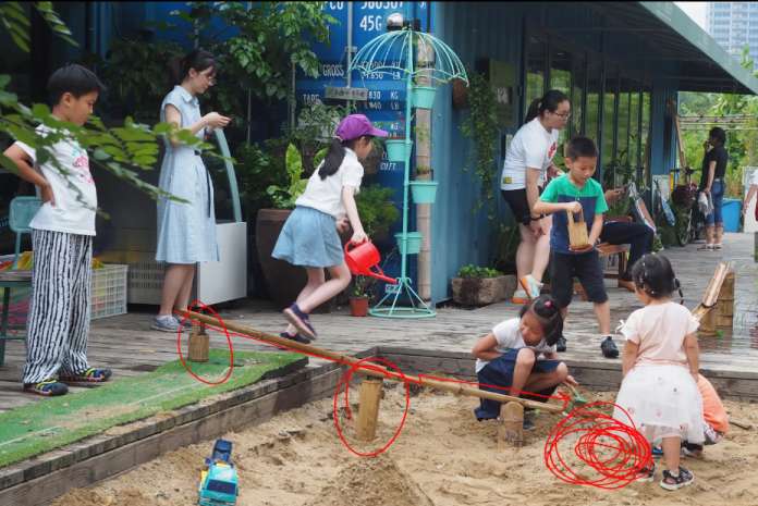 第二个案例是上海市杨浦区五角场街道的创智农园。该地是典型的都市隙地,在更新前是一片弃置荒芜的空间,五角场商圈的现代繁华和上海财大老小区的破败在此地形成强烈的冲击对撞。在满足城市绿地验收标准的前提下,刘悦来的团队在此地充分发挥了创造力,完成了一次社区沟通共享的先锋实验。一反城市绿地建设单调刻板的常规,创智农园开辟了自然植物、池塘、堆肥区、沙坑、木屋等多样化的场景,使这片城市农园成为不同年龄和职业的居民的共同乐园。居民们在此亲近自然、共事耕炊,也一同参与高校教师的讲座和读书会。