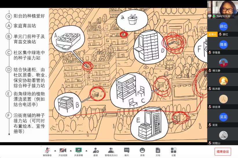 刘悦来、易虹、施芸卿和薛红四位老师一起连线和将近80名参与者共同讨论