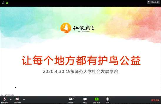 4月30日(周四)下午,爱德基金会让候鸟飞公益基金执行长刘慧莉老师做客《社会公益与创新》,与课程师生们分享公益基金项目“让候鸟飞”的故事。本次讲座通过软件ZOOM线上进行,由3044永利集团的薛红老师主持。