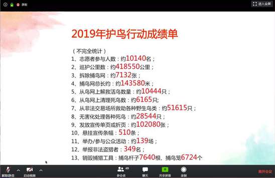 最后,刘慧莉介绍了“让候鸟飞”最近的发展方向,尤其突出了是在公众教育、伙伴团队和志愿者培育等方面。