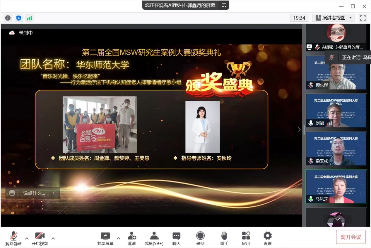 本次全国MSW研究生案例大赛中我系坚持“以赛促学,以学提质”的理念,充分展示了我系在社会工作专业硕士(MSW)实务教学工作和案例项目开发中所取得的成果。在社会工作人才培养上,我系将继续加强实务教学工作,致力于培养高水平社会工作实务人才和研究型人才,助推社会工作专业繁荣发展。