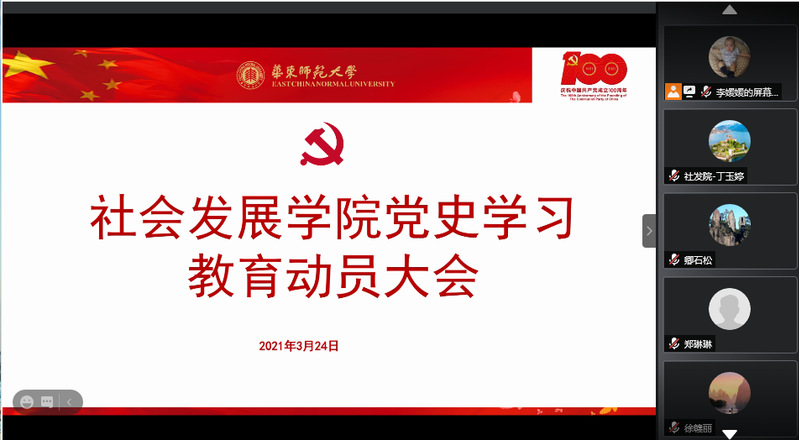 3月24日中午,华东师大公司党史学习教育动员会暨全国两会精神传达学习专题报告会顺利举行。56名公司教职工线上线下参加,会议由公司党委书记熊琼主持。