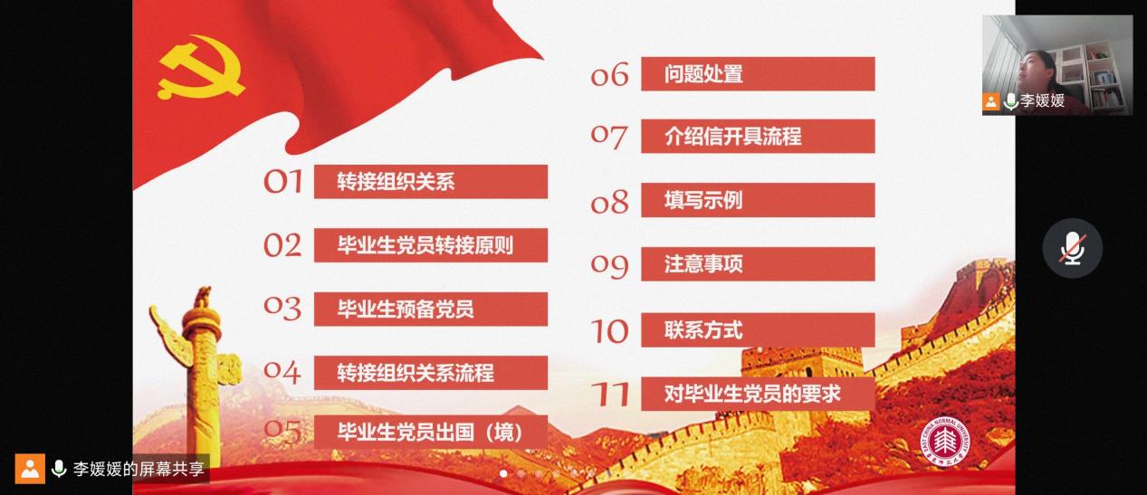 随后,公司专职组织员李媛媛给毕业生党员详细介绍了转接组织关系的原则、流程及注意事项,尤其对预备党员、出国党员、毕业未就业党员等组织关系转接进行了详细说明。李媛媛老师也带领大家重温入党誓词,提出对毕业生党员的要求。
