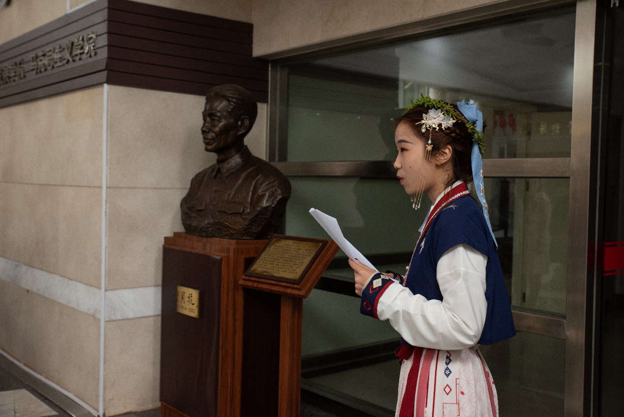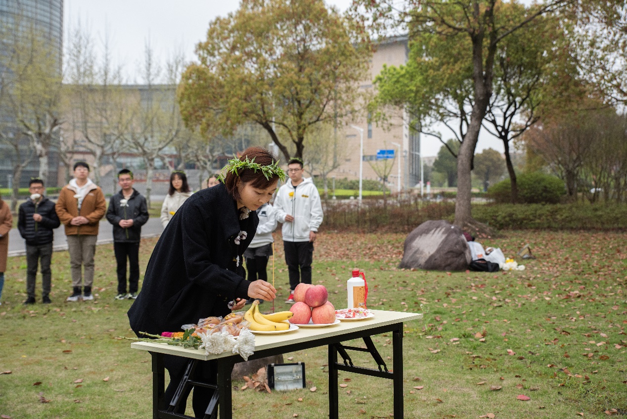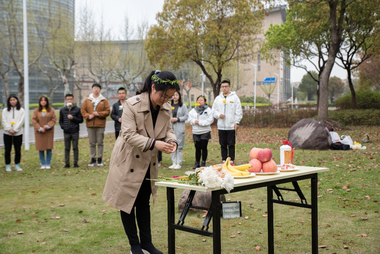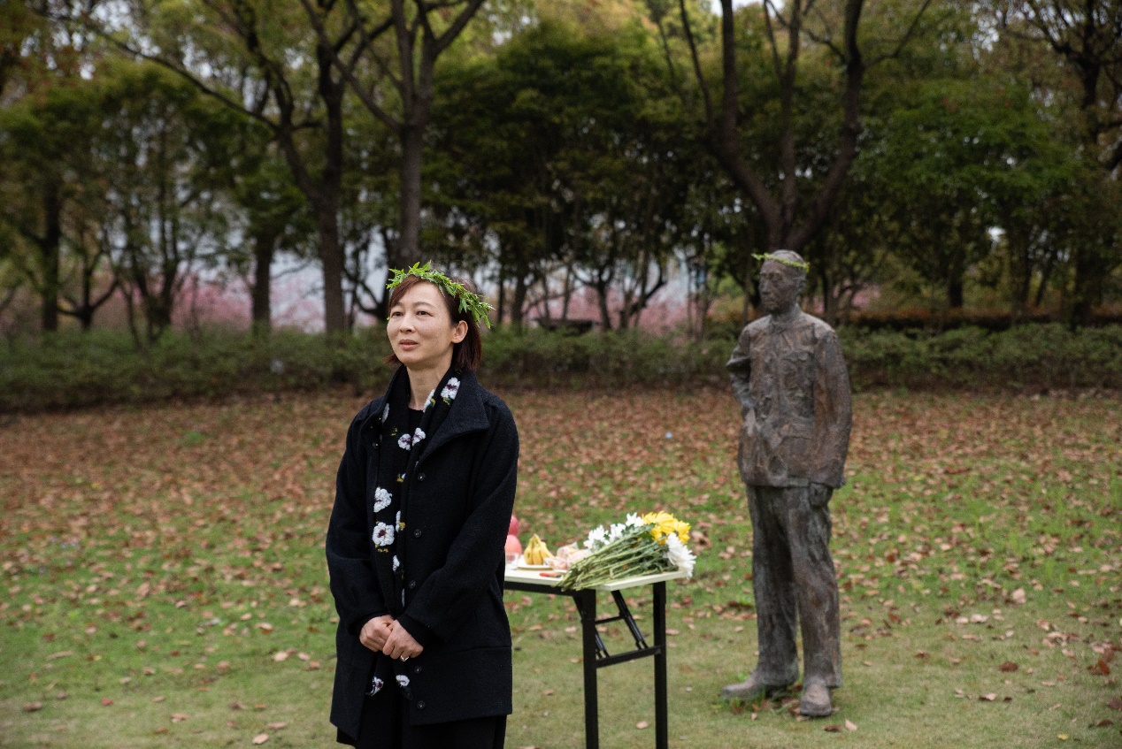 祭祀活动结束后,在场师生前往法商楼为胡焕庸先生、周抗先生戴柳献花。