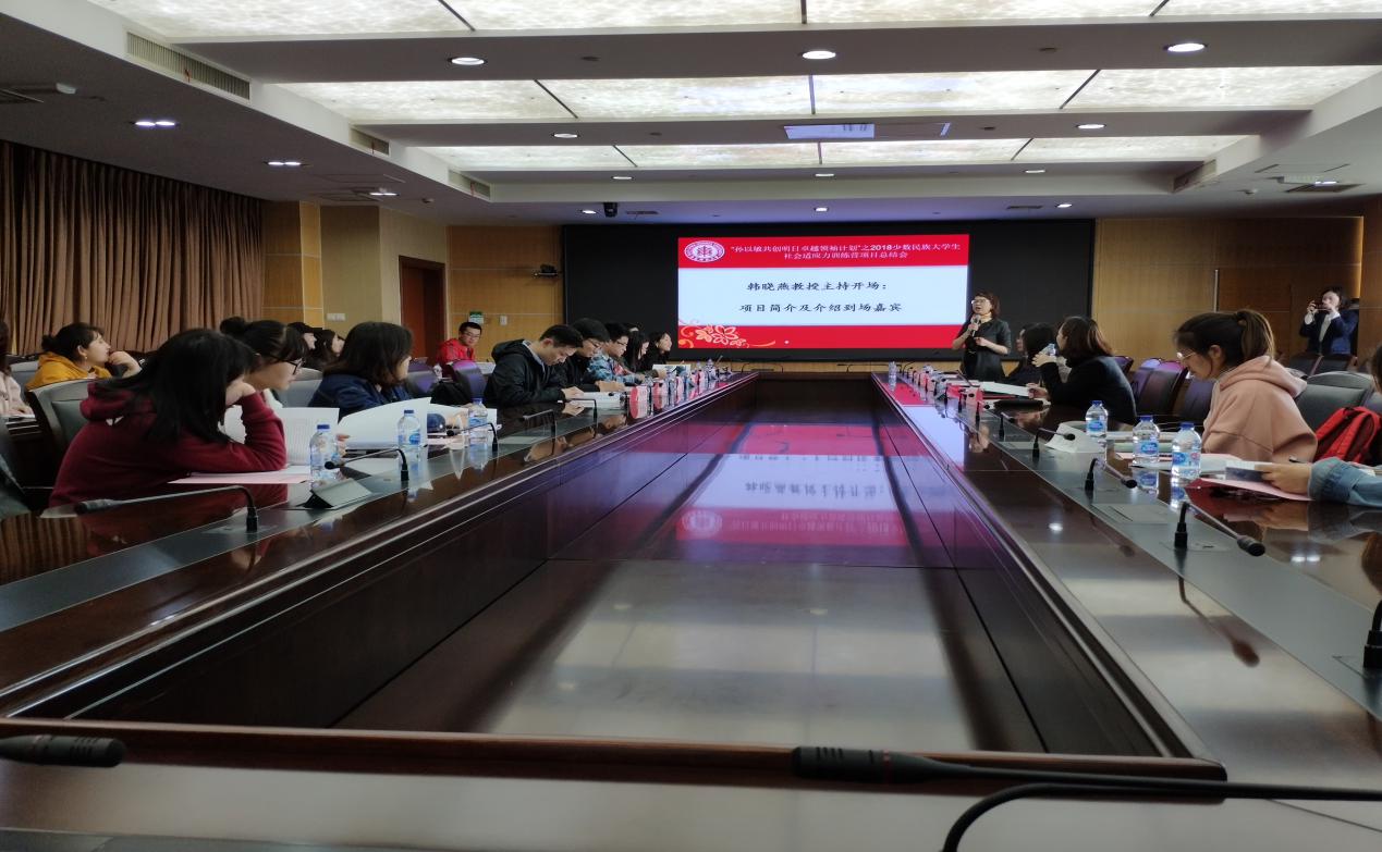 出席本次活动的有“孙以敏共创明日卓越领袖训练营”的资助者孙以敏先生、公司党委书记熊琼、党委副书记黄燕、光华书公司党委副书记涂皘、教育发展基金会办公室副主任章晶晶、教务处全校项目总管理员经雨珠、校内督导老师尹强、郭娟、校外督导王逸玮、龙雨田、孙振军以及参与2018年项目执行的少数民族老员工。会议由项目负责人、3044永利集团社会工作系韩晓燕教授主持。