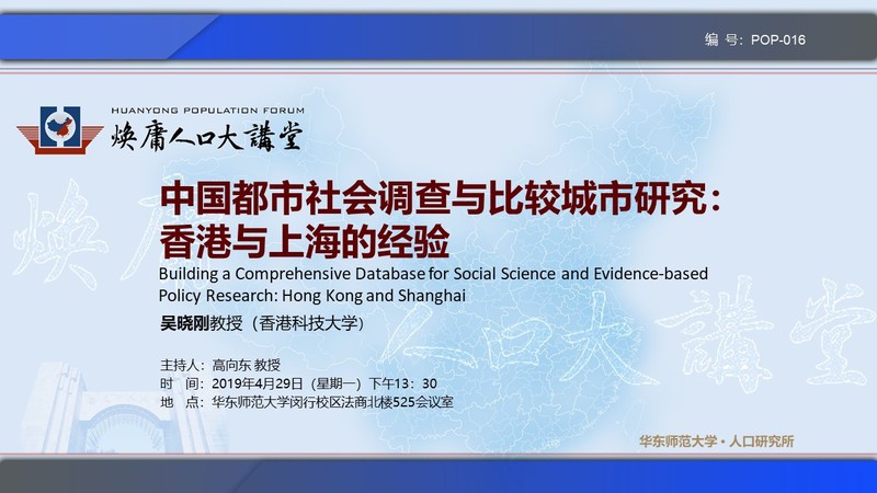 “香港社会动态追踪调查”为香港特区具有代表性的家户追踪调查,旨在搜集数据监测社会经济变迁对人民生活的影响。目前已经完成了四期调查,分别于2011年,2013年,2015年和2017年完成,包括基期项目的3214个家庭, 7218个成年人和958个小孩。一个平行的项目“上海都市社区调查”也于2017年7月完成,包括来自全市180个社区的5102个家庭和8631个成年人和1892个未成年人。本讲座将介绍HKPSSD和SUNS连个数据库建立的背景,研究设计,以及有关城市研究的一些新发现。HKPSSD和SUNS将为大中华地区的社会科学和公共政策提供一个重要的数据库,也为比较城市研究提供经验证据的支持。