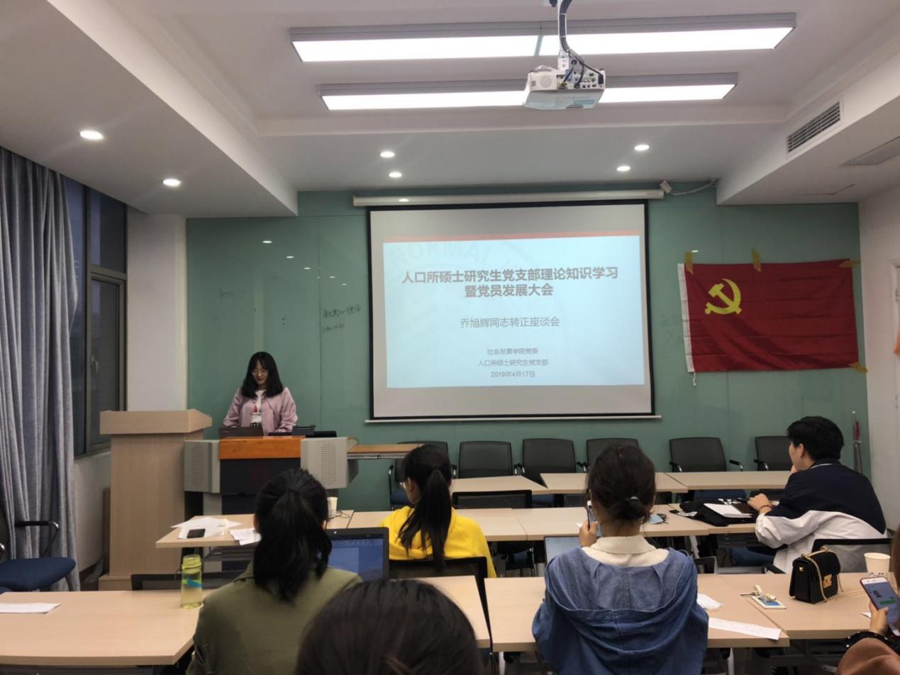 为有效充实人口所研究生党支部的队伍,以更好地发扬党支部全心全意为同学服务的宗旨,人口所研究生党支部于4月17日在法商北楼509召开了党支部理论知识学习暨党员发展大会。支部全体正式党员、预备党员和部分入党积极分子参加了此次会议,会议由党支部书记张婷婷同志主持。