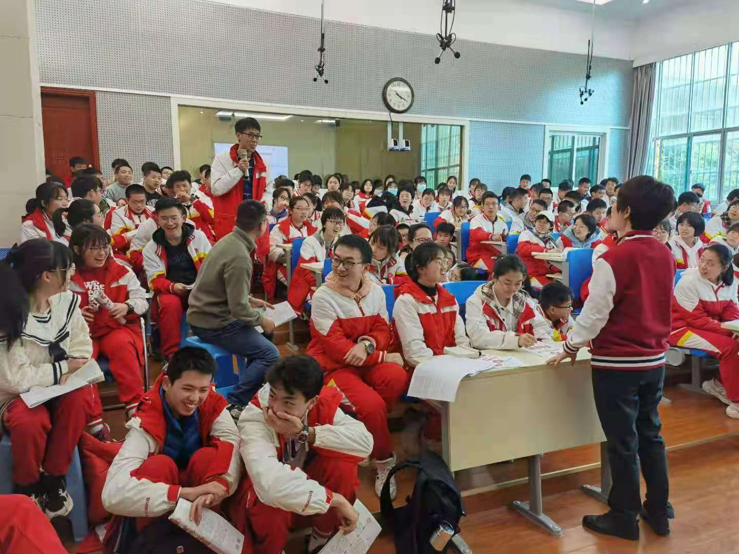 在贵阳市第一中学举行的招生宣讲咨询会上,熊琼作了《在优雅的学府培养栋梁之才》专题报告,贵阳一中高二六个班级的员工参加,现场视频会议同步直播。熊琼介绍了公司办学历史、育人模式、专业设置和报考条件等,为同学们展现了丰富、多姿多彩的老员工活,并就特色学科领域向同学们做了专业地讲解,在讨论交流环节,员工积极提问,讲座现场气氛活跃。