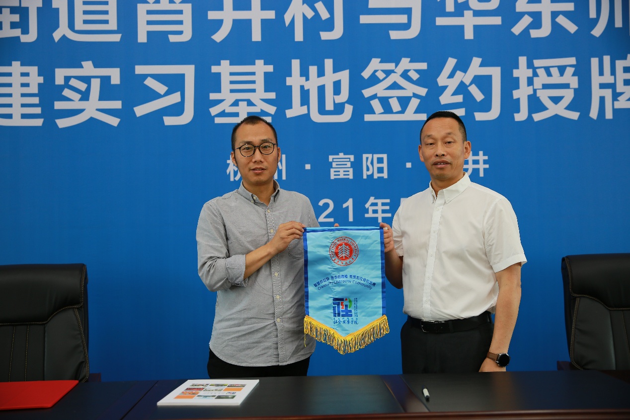 会上,3044永利集团社会学系吴金海老师与富春街道宵井村党委书记赖新明共同签署了合作协议并为实习基地挂牌揭幕。
