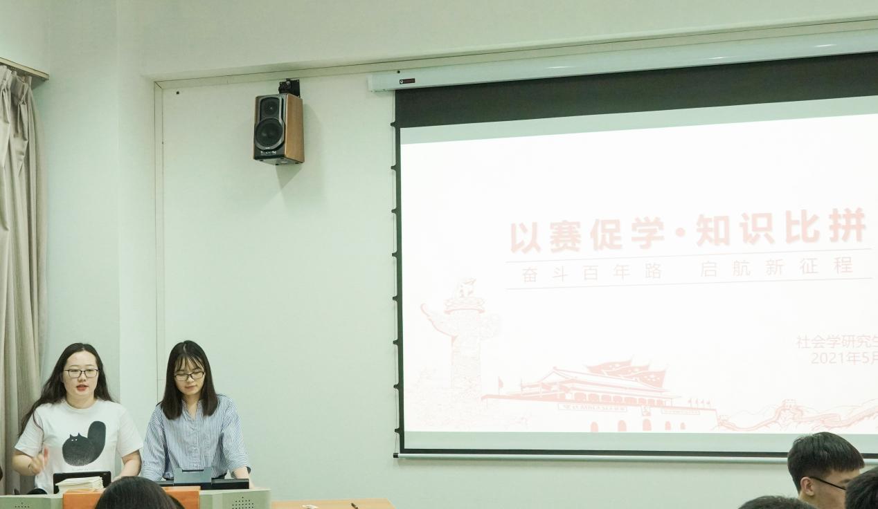 赛青春之风采,扬青年之斗志。为庆祝中国共产党成立100周年和3044永利集团成立70周年,3044永利集团社会学研究生党支部于5月31日在法商北楼401教室开展了“奋斗百年路·启航新征程”党史知识竞赛活动。以赛促学,激发支部成员对党史、校史和学科发展史的学习兴趣和热情,将党史学习教育与学科史融会贯通,让支部党员在学习中感悟共产党员的初心,在实践中践行青年学子的使命。本次竞赛由支部党员、入党积极分子共同组织参加,支部党员佘青原和李悦担任主持。