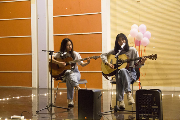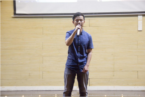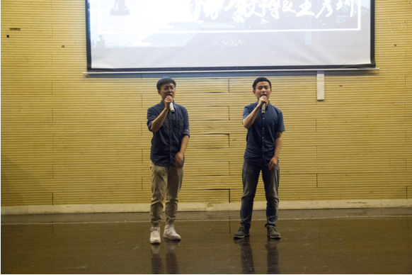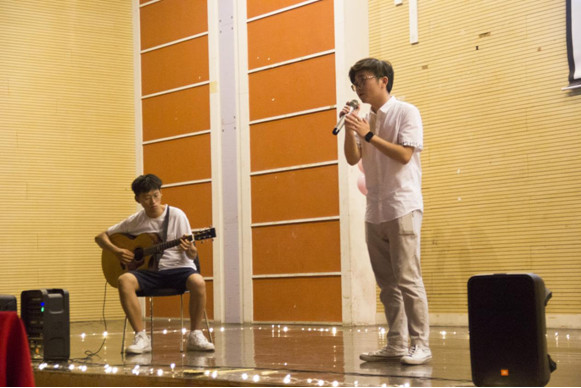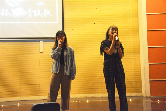 18时30分整,主持人孙睦迪同学和黄涵同学宣布歌会正式开始,比赛由此拉开序幕。首轮演唱的第一首歌由刘牧灵与叶润泽同学组成的“铁汁”组合带来,一首《大碗宽面》满溢着活泼欢乐的气氛,成为整场歌会的“开胃菜”;瞿滢同学带来一首温柔婉转的《房间》,她优美的歌声在舞厅久久萦绕;随后,李文博同学献上一首《爱情的模样》,歌声中饱含着自己对爱情的理解;刘煜轩同学的《假如让我说下去》同样深情款款,打动了在场同学的心;赵兰溪同学以她温柔的嗓音,将《Falling slowly》中蕴含的情感娓娓道来;实力强劲,对声音把控自若的朱钰喆同学献上一曲《执迷不悔》,赢得满堂喝彩;方陈全有同学因其动听的嗓音被戏称为“社发毛不易”,一首吉他伴奏的《难得》让实时更新的大屏幕上铺满了溢美之词;傅文静同学也用一首个性十足、满怀情感的《夜车》让现场观众大声欢呼;最后,王彦珂同学带来的《知道不知道》,以及朱苓君同学用二胡奏唱的《大鱼》,将整场歌会气氛推向了高潮。