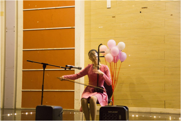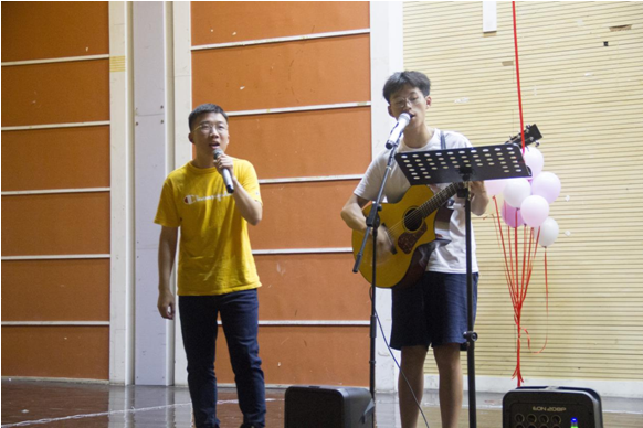 游戏结束后,第二轮“帮帮唱”环节紧接着开启。首先出场的是朱苓君同学,她用二胡演奏的一首悠扬的《赛马》,让人仿佛置身辽阔的草原;由王彦珂和李文博同学带来的《凡人歌》同样扣人心弦;傅文静携其搭档欧阳江影同学带来一曲《斑马斑马》,歌声中倾注了他们深深的情感。方陈全有邀请外院同学陈彦涵一同演唱了《一次就好》,双方真情倾注,听众自发鼓掌喝彩。之后,铁汁组合带来一首《老男孩》,他们用青春的声音演唱沧桑的歌,送去了对学长姐的美好祝福。赵兰溪和张金茗同学携手带来《七里香》,悠扬的旋律配上柔美的歌声,让人久久不忘。朱钰喆和李牧歌同学带来一首《玫瑰色的你》,两位同学独具特点的嗓音和不俗的唱功给听众带来了一段美妙的音乐盛宴;由刘煜轩与何太皓同学演唱的《后来》,节奏韵律搭配上动感的舞姿,引得全场观众互动频频。最后,一首《消愁》由瞿滢与高嘉诚同学动情演绎,歌会比赛环节在他们美妙的歌声中结束。