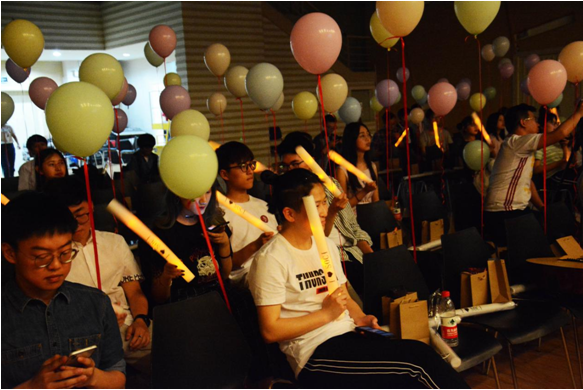 第一轮演唱告一段落,紧接着是抽奖环节。此次送出的奖品为文体中心精心挑选的创意小台灯,以在线弹幕抽奖形式送出,最后奖品花落幸运的曹曙同学之手。