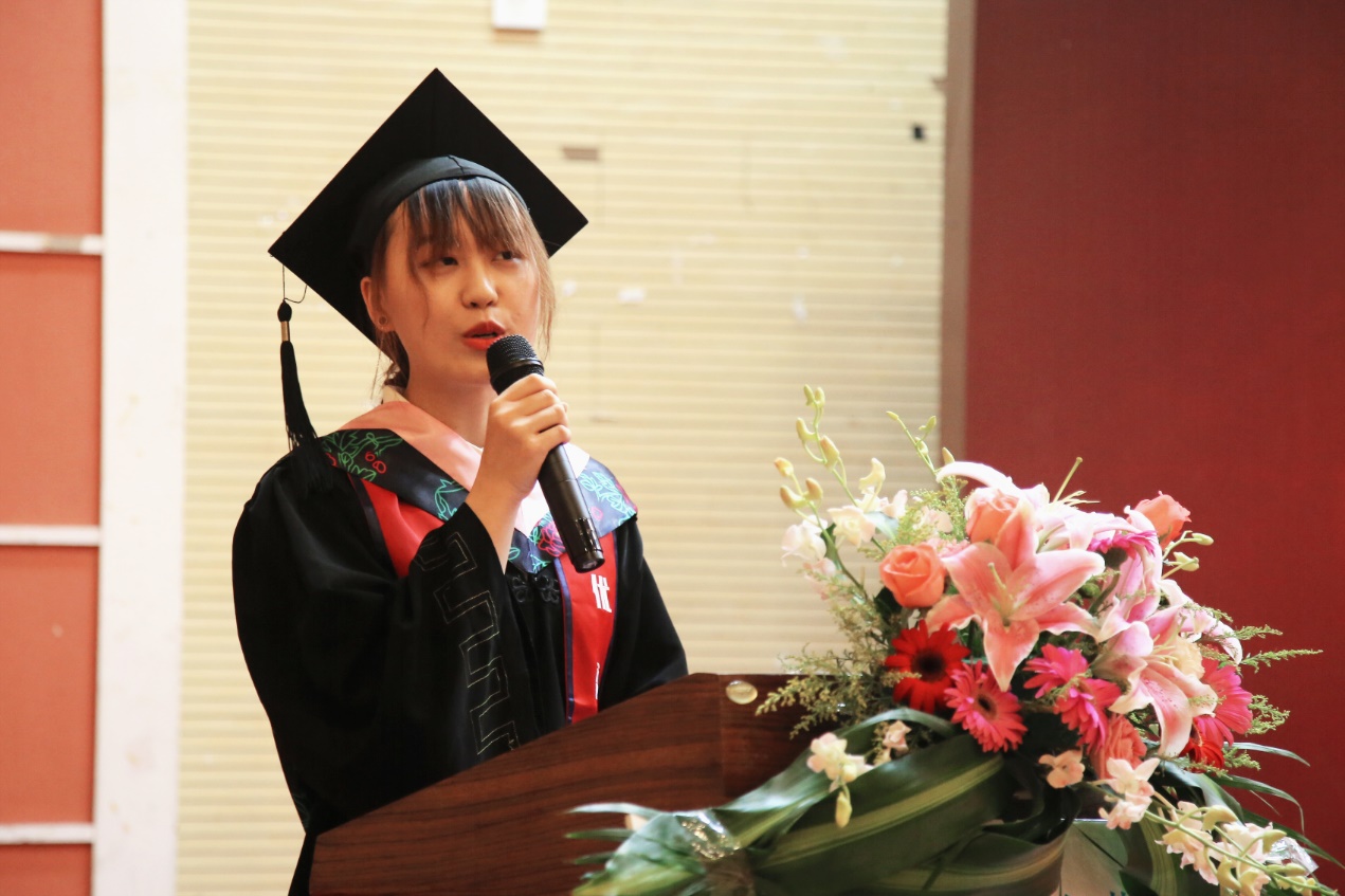 随后,优秀本科生代表瞿滢和优秀研究生代表张雨上台发言,他们都回顾了自己往昔难忘的经历,分享了自己的深刻体悟,言语中亦充满对母校与公司的留恋和对未来的憧憬。