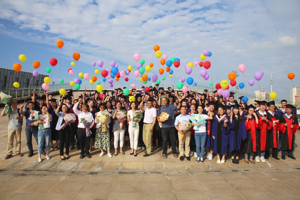 在这个意义非凡的下午,毕业学子们与老师一起放飞“我爱社发”气球,气球承载着老师和同学们的希冀,飞向远方。