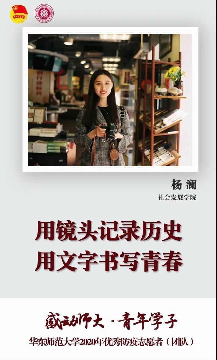 其中,公司社会学专业2018级硕士生杨澜获评“感动师大·青年学子”优秀防疫志愿者。