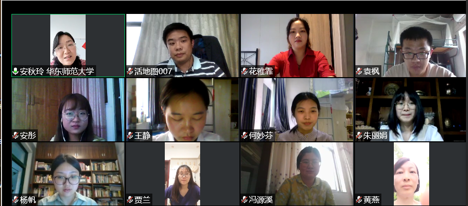 答辩结束后,三位老师前往小会场进行讨论后返回主会场宣读答辩结果。何姗姗副教授宣布该组成员全部通过答辩,同时公布了该组的优秀论文获得者——袁霞,在祝愿大家的同时也建议大家根据答辩专家的建议进行进一步修改,将毕业论文这份研究生生涯的作品以最好的方式呈现出来。最后,全体在腾讯会议进行了云合影。