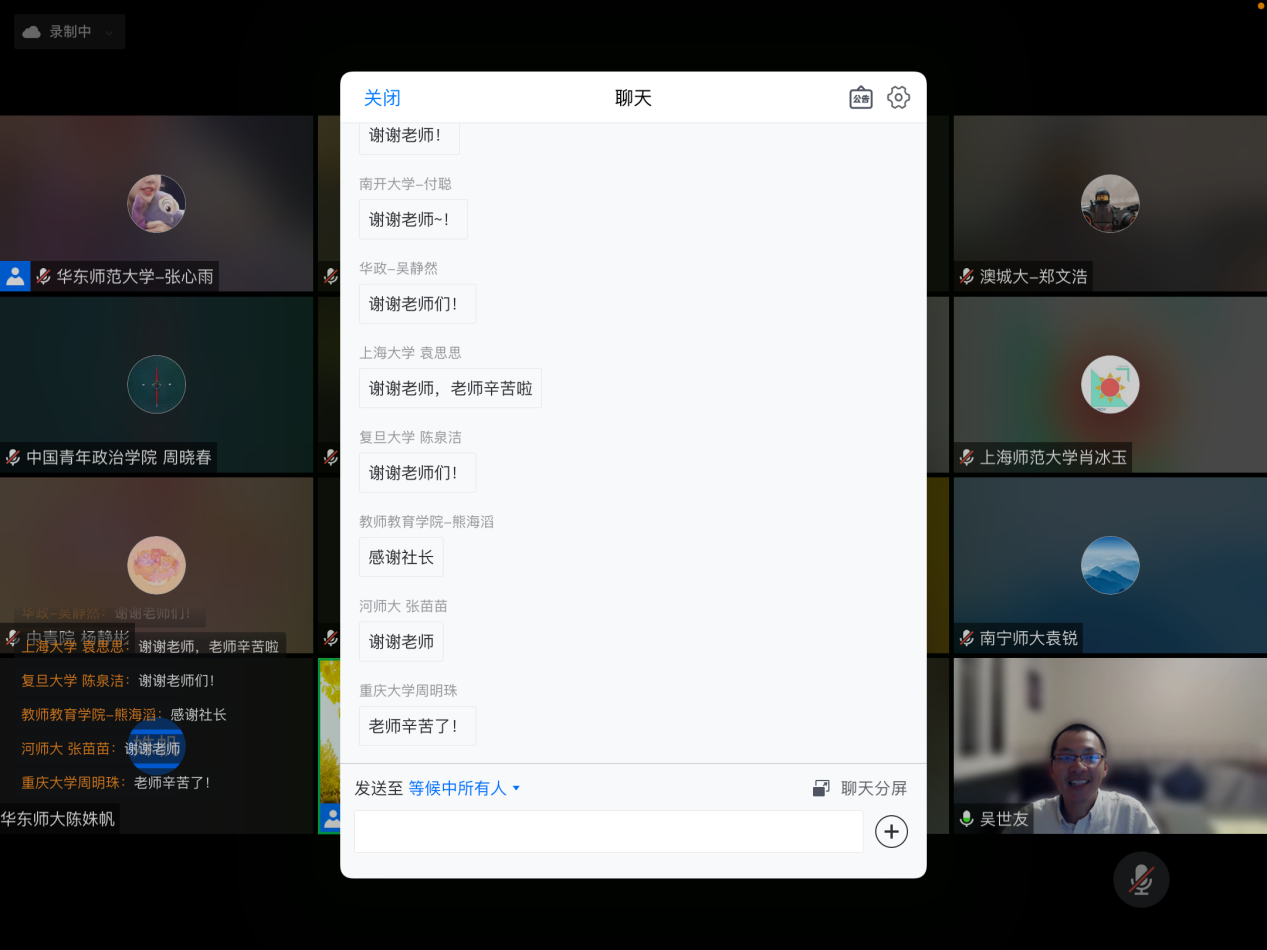 讲座尾声,来自全国各地不同高校的师生、相关领域工作人员,积极地在留言区向吴世友老师分享自己工作和科研过程中的所思所想。吴老师与参会师生进行了深入的交流和互动,并就留言区的相关问题给予了详细解答。讲座最后,安秋玲副教授再次向吴老师表达感谢,参会师生也纷纷在留言区表达谢意。至此,本场讲座圆满落幕!
