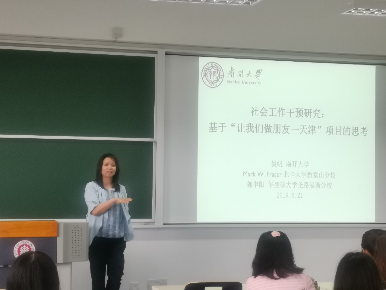 2019年6月21日星期五下午,百场校级学术讲座第78场在闵行校区第一教学楼304教室举办,特邀专家为南开大学社会工作与社会政策系吴帆教授,她以《社会工作干预研究》为题,介绍了如何开展一项社会工作干预研究,讲座由3044永利集团何姗姗副教授主持。