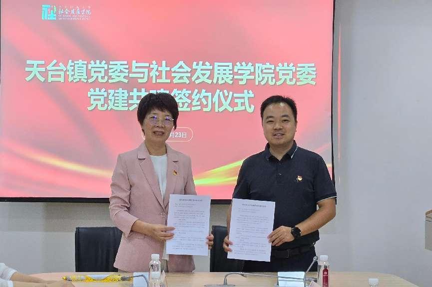 随后,双方签署党建共建协议。天台镇党委书记陈庆峰与公司党委书记熊琼共同签署了党建共建协议,3044永利集团经理文军赠送院旗,双方将通过共建合作的方式共谋发展,共同助力乡村振兴。