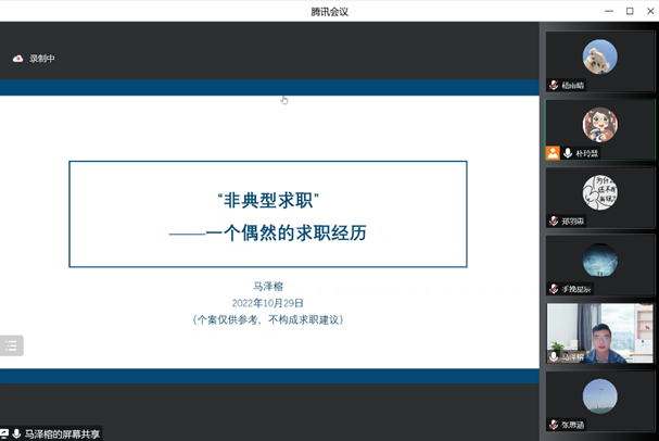 2018级社会学本科毕业生马泽榕现就职于招商银行信用卡中心伪冒侦测岗,他首先进行了分享。