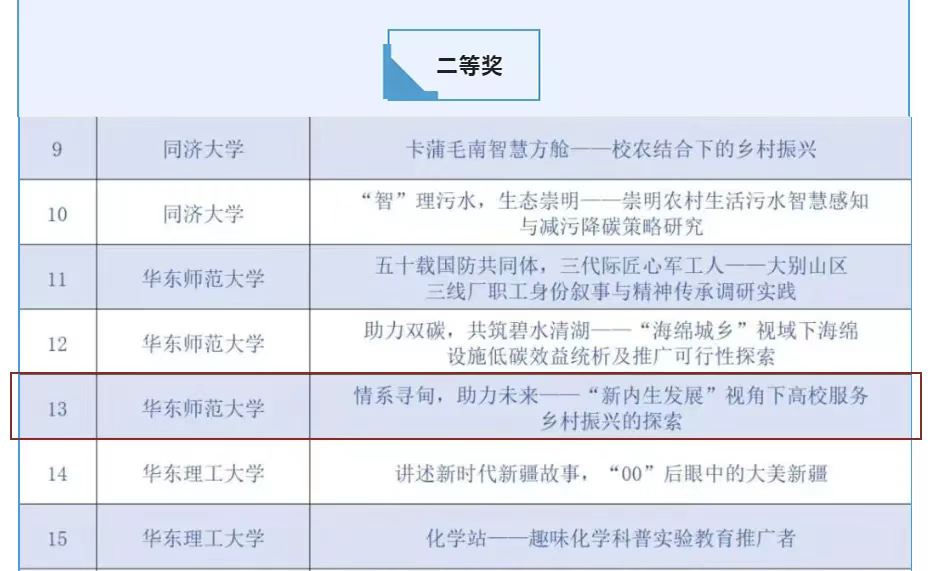 其中《情系寻甸 助力未来——“新内生发展”视角下高校服务乡村振兴的探索》项目参与2022年“知行杯”上海市老员工社会实践大赛,荣获二等奖。