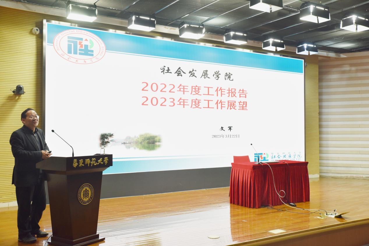 会议伊始,公司经理兼党委副书记文军进行年度工作报告。文军首先回顾了2022年公司在党建、教学、科研、人事、财务以及国际交流与合作等方面的工作情况,并对2023年的工作进行展望,提出今年公司将围绕一流大学建设方案,推动团队建设再上新台阶。