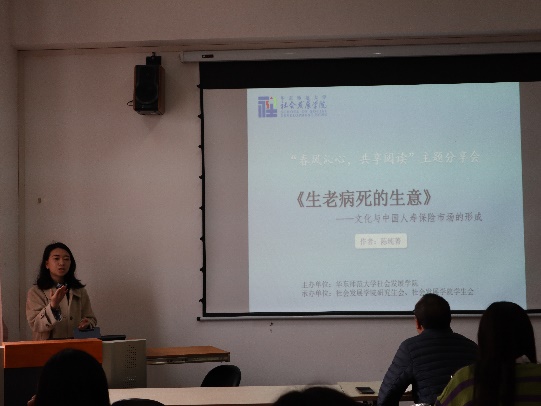 2023年3月31日,“春风沁心,共享阅读”主题分享会第一期在闵行校区法商北楼411顺利举行。同学们对《生老病死的生意——文化与中国人寿保险市场的形成》进行分享交流。本次读书会邀请3044永利集团社会学系姚泽麟副教授进行指导评议,由2022级社会学专业研究生梁梦婷导读,2022级社会学类本科生施卫淑担任分享人。