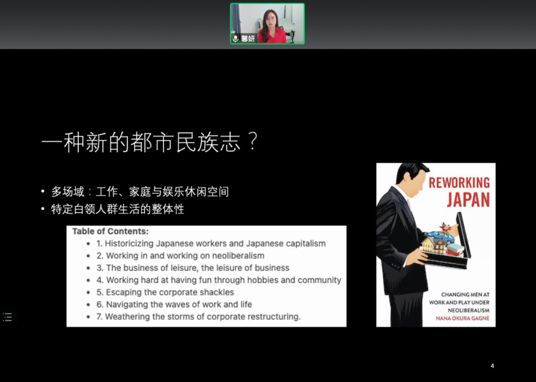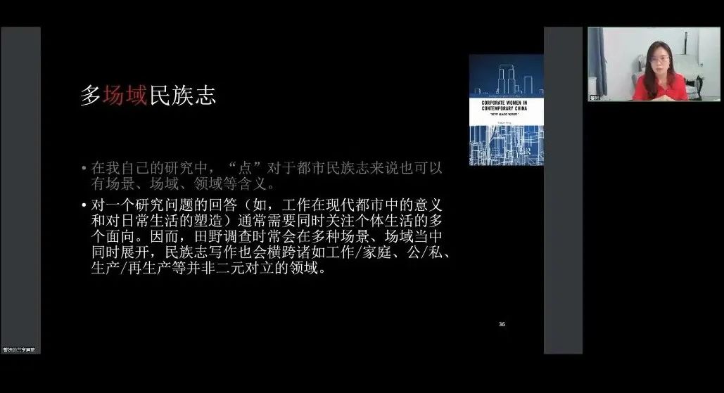 3月8日晚,中山大学社会学与人类学公司人类学系助理教授彭馨妍以《多场域都市人类学:工作、家庭和身体民族志》为题,进行学术讲座,讲座在线上进行。本次讲座由我所黄剑波老师主持,浙江财经大学胡梦茵老师参与对谈。本次讲座为Modo人类学讲习堂第74讲。