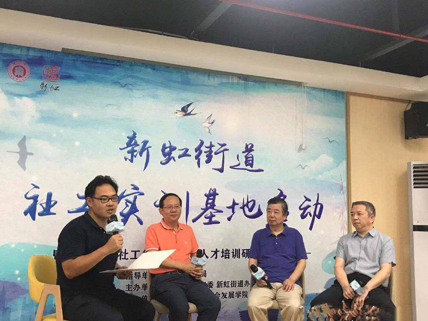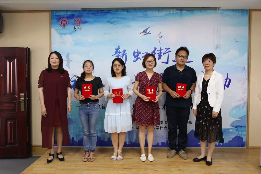 启动仪式上,新虹街道党工委副书记、办事处主任郁小明进行致辞。新虹街道党工委副书记龚悦琦、华东师大公司党委书记熊琼为新虹街道社工实训基地吴同、吴越菲、顾维绮和易臻真四位老师颁发聘书。
