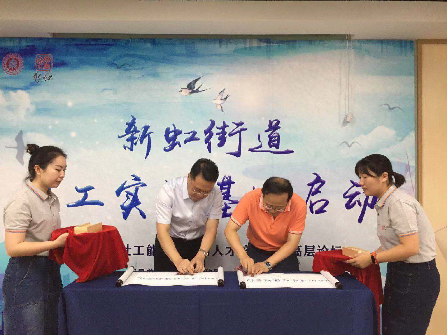 郁小明和文军共同为新虹街道合作课题签约