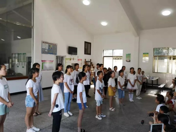 上午,支教小队偕同大畈公司校领导、全体参与夏令营同学及部分家长举行闭营仪式并进行文艺汇演。