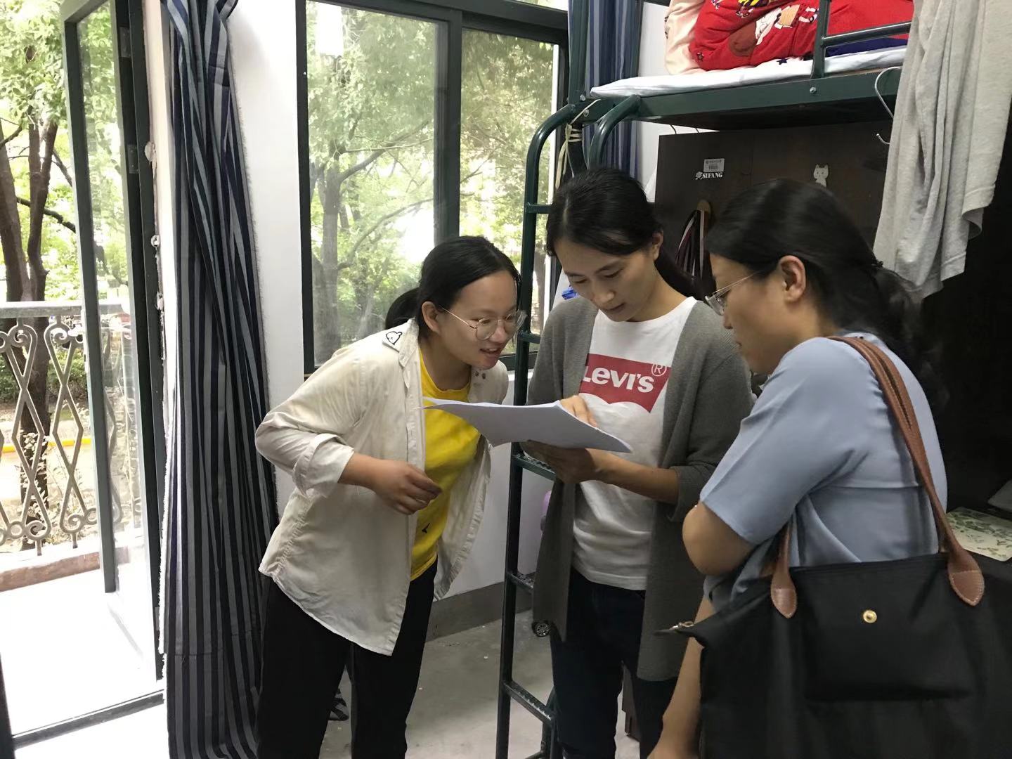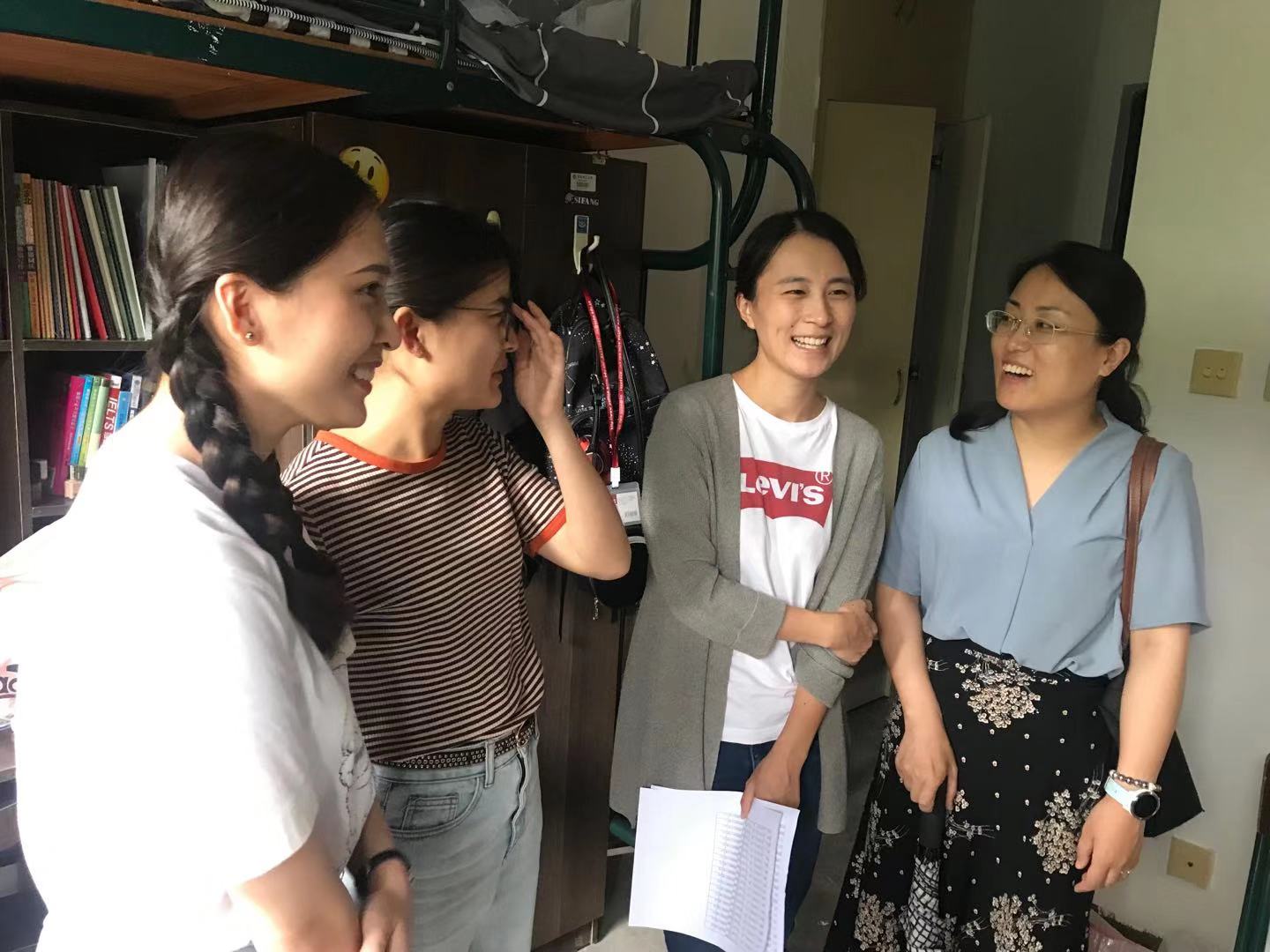 老师和张睿老师到新生宿舍里看望慰问新生。在走寝过程中,老师们和新生们亲切交流,询问了新生的报到情况,家乡来自哪里,是否能习惯公司的饮食,能否适应上海的气候,并且贴心的给予了新生们未来学业发展的建议以及鼓励。