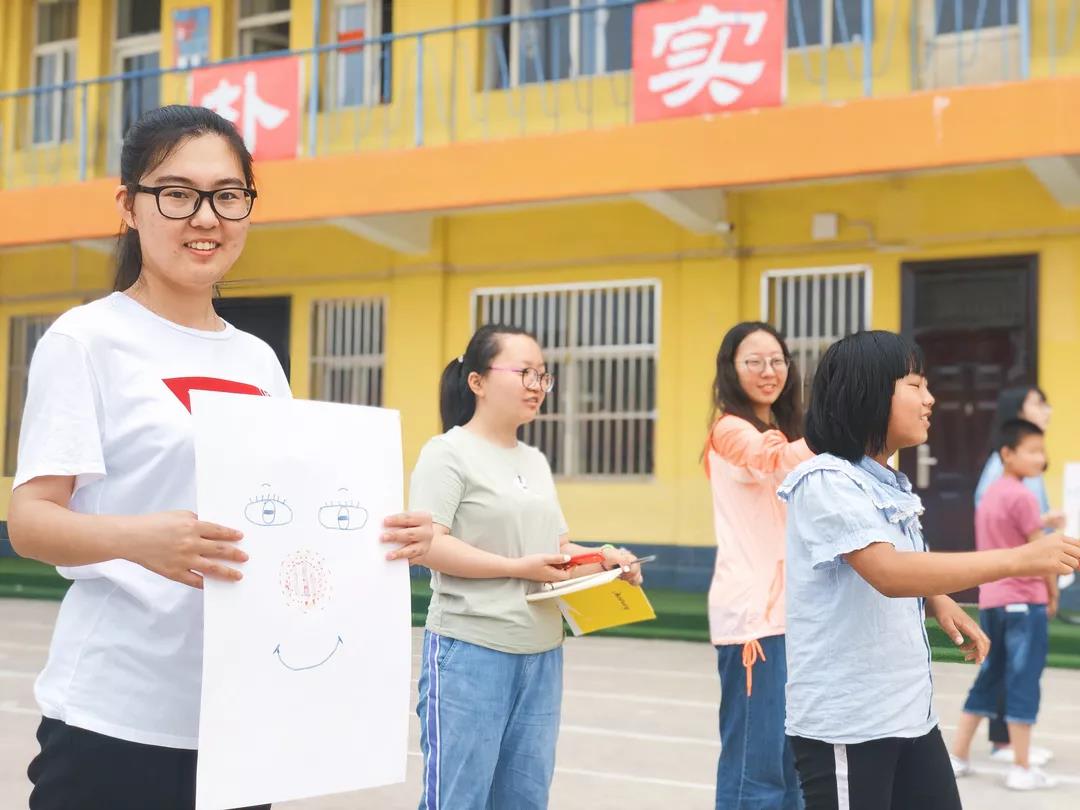 老师们画了各种可爱的笑脸作为道具,让孩子们转圈后闭眼在队友的帮助下贴鼻子。
