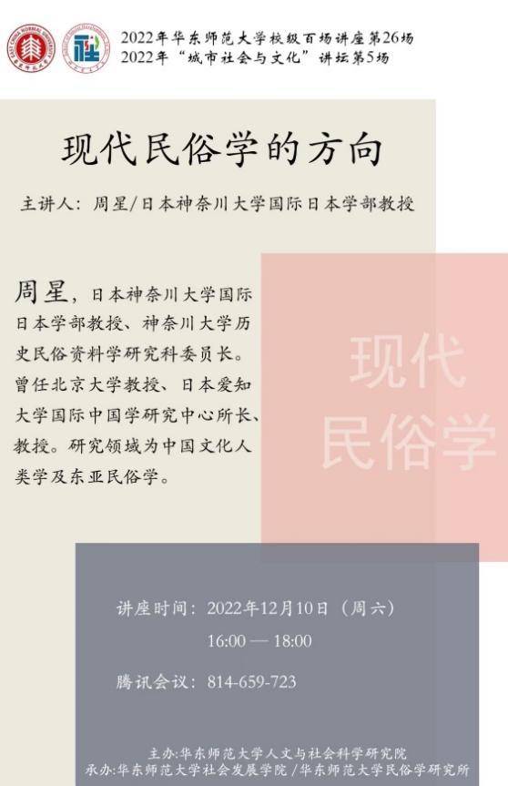 周星,民族学博士。现任日本神奈川大学国际日本学部历史民俗学科教授、神奈川大学大公司历史民俗资料学研究科委员长、博士课程指导教授,兼任中国民族学会海外理事、中国艺术研究院客座研究员、北京师范大学兼职教授。曾任北京大学社会学人类学研究所教授、日本爱知大学国际中国学研究中心(ICCS)所长、教授。研究领域为中国文化人类学及东亚民俗学。