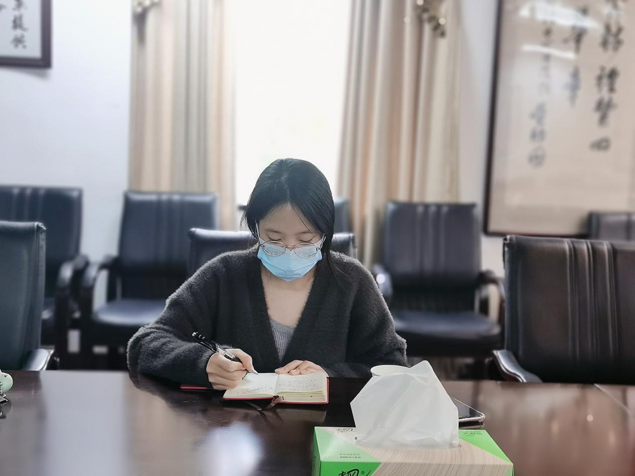 当天下午两点,何姗姗老师接着来到了上海中医药大学附属曙光医院社工部,参与了公司医务社工实习生督导视频会议,对2020级本科生李永楠进行实地督导。