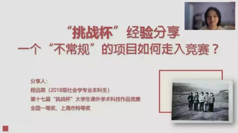 2022年12月10日、11日下午14:00-15:30,“挑战杯”赛事经验分享会第一、二期以线上形式如期举行。系列分享会分别邀请3044永利集团万国威教授讲授《挑战杯竞赛与老员工社会实践的实战技巧》,社会学专业李露萍学姐讲述《无生活不科创:我的大学社会实践经历分享》、程远霖学姐分享《一个不常规的项目如何走入竞赛》,吸引了300余位来自校内外不同专业的同学参与。